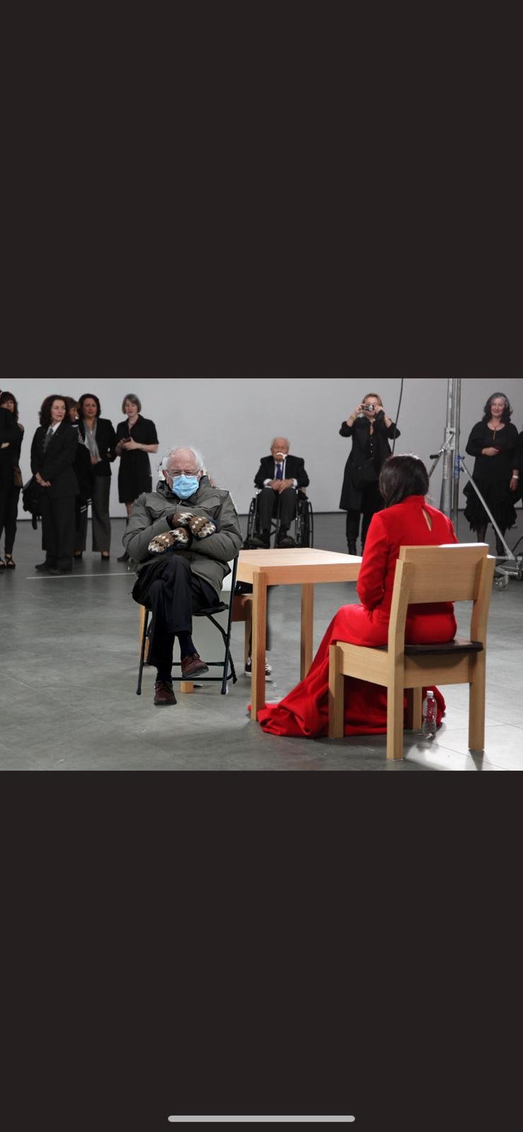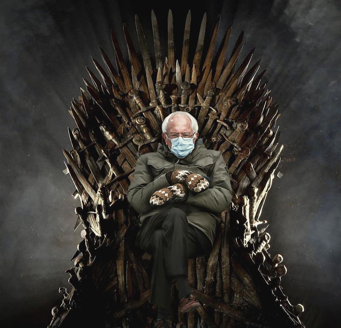 Trump’ın ülkeden ayrılırken çekilen görüntüleri, bütün Amerika’ya “Evet bir aksilik olmadan tören bitecek” hissini en başında vermiş gibiydi. Politik gerginliklerin durulması ve sosyal medyada törene katılan isimlerin görünümleri hakkında konuşulmaya başlanması da iyiye işaretti. Kamala Harris’in anlamlı mor seçimi (Amerika'nın ilk siyahi kadın kongre üyesi Shirley Chisholm’a yapılan bir atıf) ve eşleştirdiği inci kolyesi değerlendiriliyor, Amanda’nın kulağındaki Oprah Winfrey hediyesi küpelerine anlamlar yükleniyordu.Ta ki 2016’da olduğu gibi 2020’de de demokratlar cephesinde aday adayı olarak kalan Sanders’in bir iskemle üzerinde çekilen görüntüsü dikkatleri çekene dek.