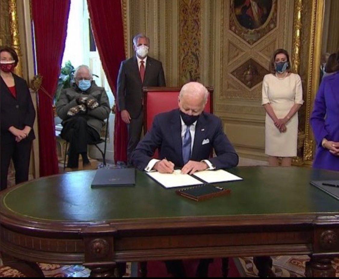 Amerika’nın 46. Başkanı Joe Biden ve Başkan Yardımcısı Kamala Harris yeminlerini etti. Gelmiş geçmiş tüm başkanlık yemin törenlerinin en genç şairi Amanda Gorman sarı ceketi ile şiirini okudu. Şarkıları, Biden’ın seçim kampanyası boyunca sık sık duyulan Lady Gaga ve sürecin başından itibaren Biden’a olan desteğini her fırsatta sergileyen Jennifer Lopez sahne aldı ve tören sona erdi. Geride ise tüm bunlardan bağımsız bir adet unutulmaz an bırakarak: Bernie Sanders ve örgü eldivenleri.