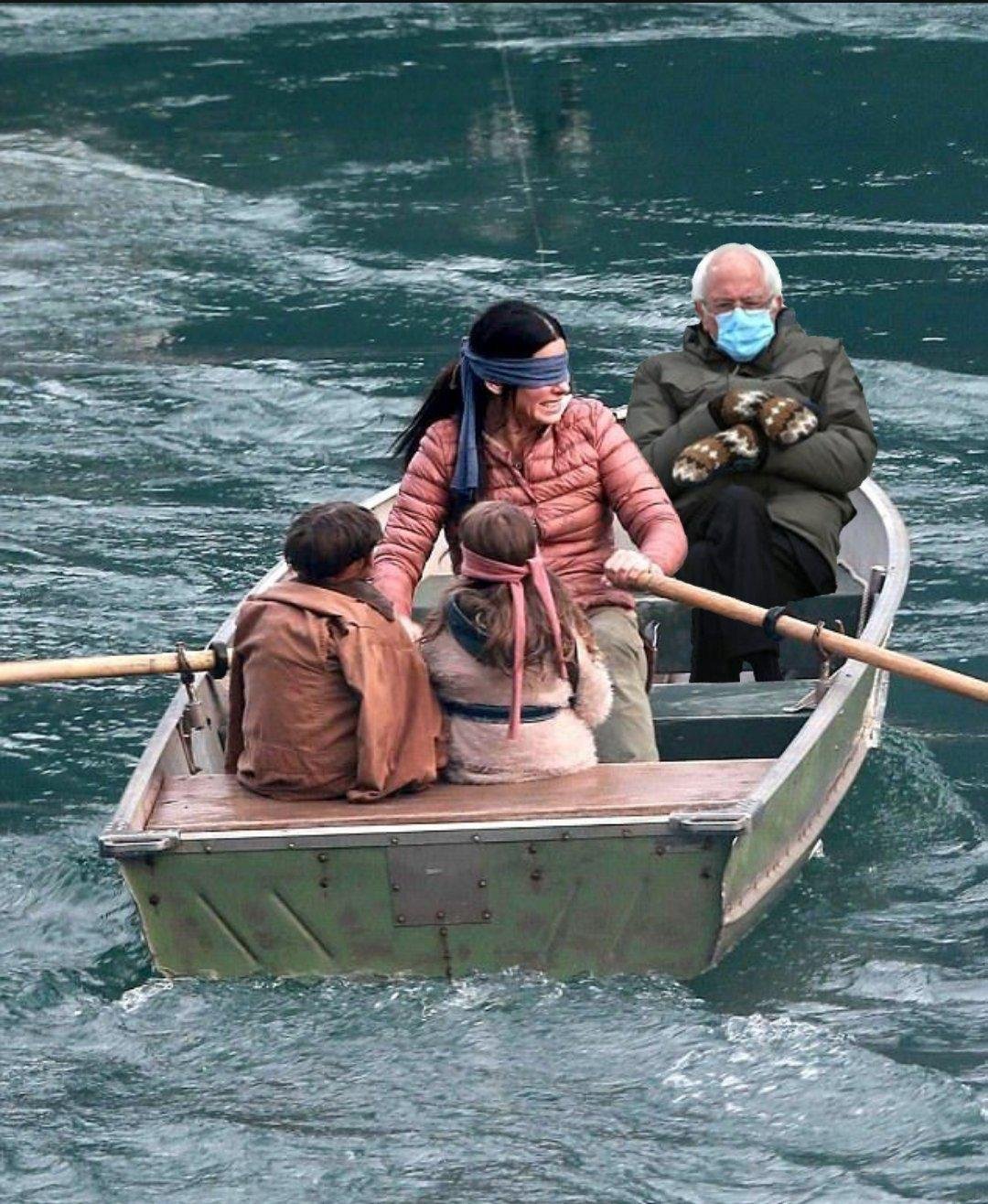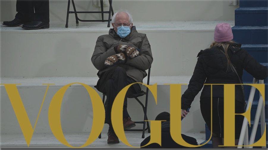 Washington DC’nin ayazında, ilerleyen yaşı ve ardında bıraktığı hararetli seçim günlerinden sonra Sanders, törene Burton marka ceketi, demode sayılabilecek kumaş pantolonu ve mütevazı eldivenleri ile “klasik büyükbaba” görünümü ile katılıyordu. Orada bulunanların, her detayı ince işlenmiş ve mesajı bol kıyafetlerinin yanında Senatonun Bütçe Komisyon Başkanı olarak görev alması beklenen Sanders’in bu samimi seçimi, sandalye üzerindeki rahat oturuşu ile bir araya gelince bu görüntü, sosyal medyada hızla viral oldu.