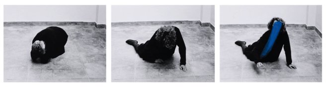 Helena Almeida’nın sanatını var eden temel unsurlardan en önemlisi, mavi. Onun son kırk yılı siyah beyaz fotoğraflara izdüşen, taşan, sıçrayan ve yaran maviliklerden oluşuyor. Mavinin ise tek bir tonunu kullanıyor. Dönemdaşı Yves Klein’in patentini aldığı mavi tonunu birebir kullandığı iddialarına da hayır yanıtını veren Helena, bir gün bu ithamlardan sıkılmış olacak ki bir şey yapıyor.