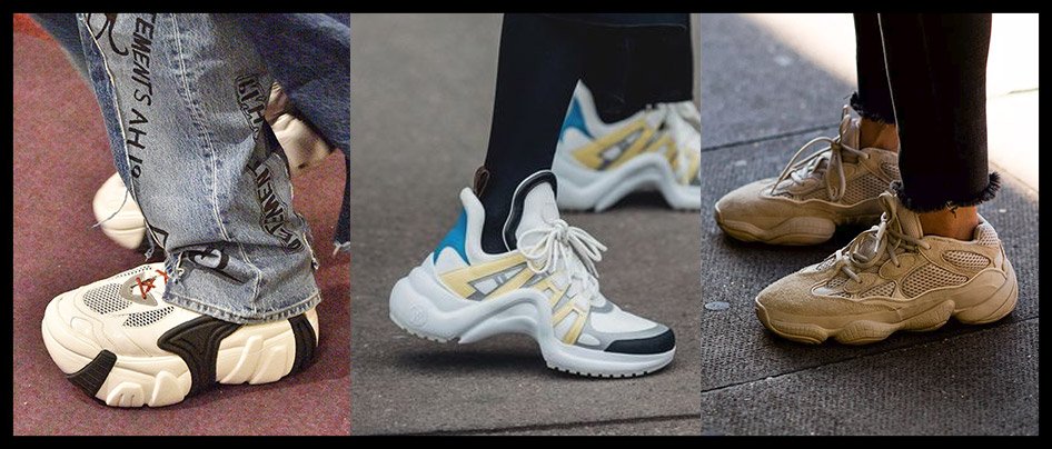 Aynı yıl Vetements, Balenciaga, Prada ve 90’ların popüler markası olan Fila, bu yeni görünüme hızla ayak uydurdu. Bunun neticesinde öncü ilk yolcular, 2017’nin Kopenhag Moda Haftası’nda bu çılgın trene atlamış oldu. O esnada kalın tabanlı ve uyumsuz renkli sneaker’lar ise moda dünyasının estetik dayatmalarına meydan okurcasına bir vurdumduymazlık manifestosu okuyordu. Üstelik tek başına iken insana büyük laflar ettirecek bu sneaker’lar, görünümler içerisinde de oldukça akıl çeliciydi.