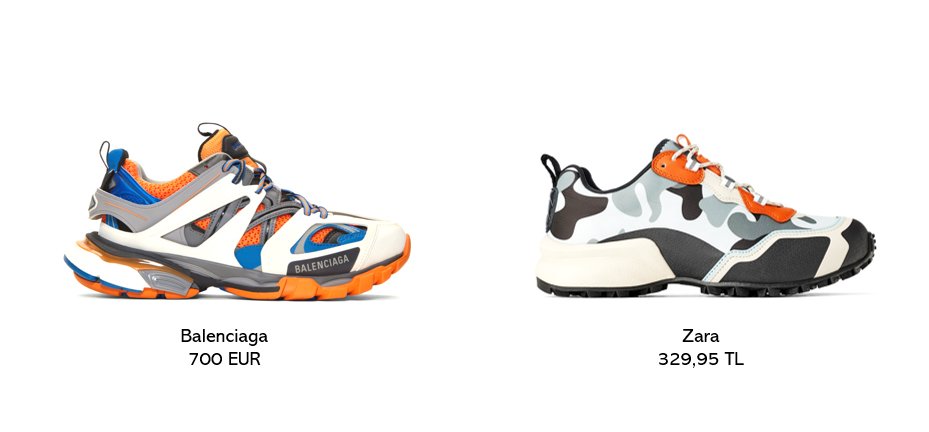 Balenciaga’da Triple S olarak beliren ayakkabılar, birçok hızlı moda markasında yapılan ince ayarın ardından bambaşka isimlerle satışa sunuldu. Louis Vuitton’ın Arclight’ı ya da Gucci’nin Flashtrek’inin benzerleri, dünyaca ünlü perakende devleri Zara ya da Mango’nun yanı sıra yerel üreticilerin atölyelerinde kendine yer buldu. Çünkü pazar bunu gerektiriyordu. Çünkü trend takipçileri, zamanının baba ayakkabıları olarak bilinen ama artık fütüristik detaylara sahip sneaker’ları ile rahat ve özgürdü. Onu istiyorlardı.