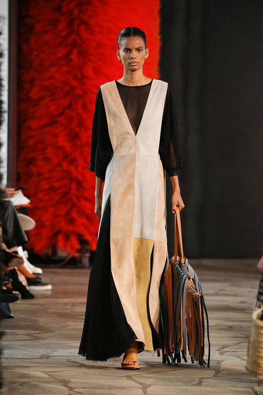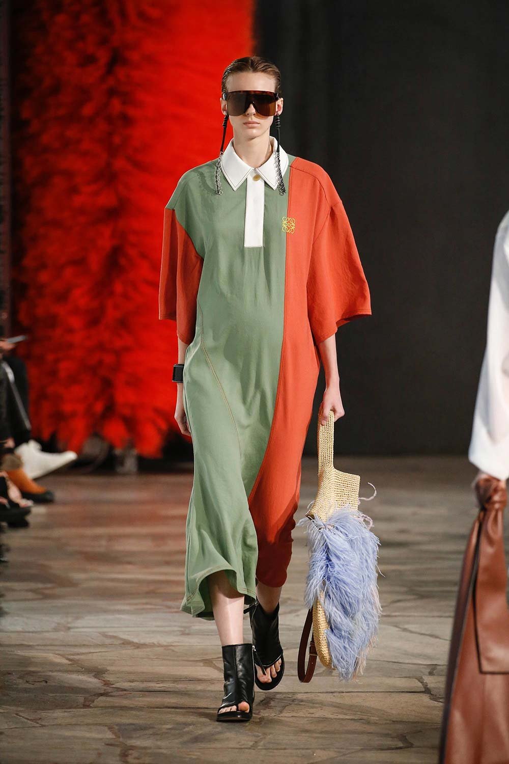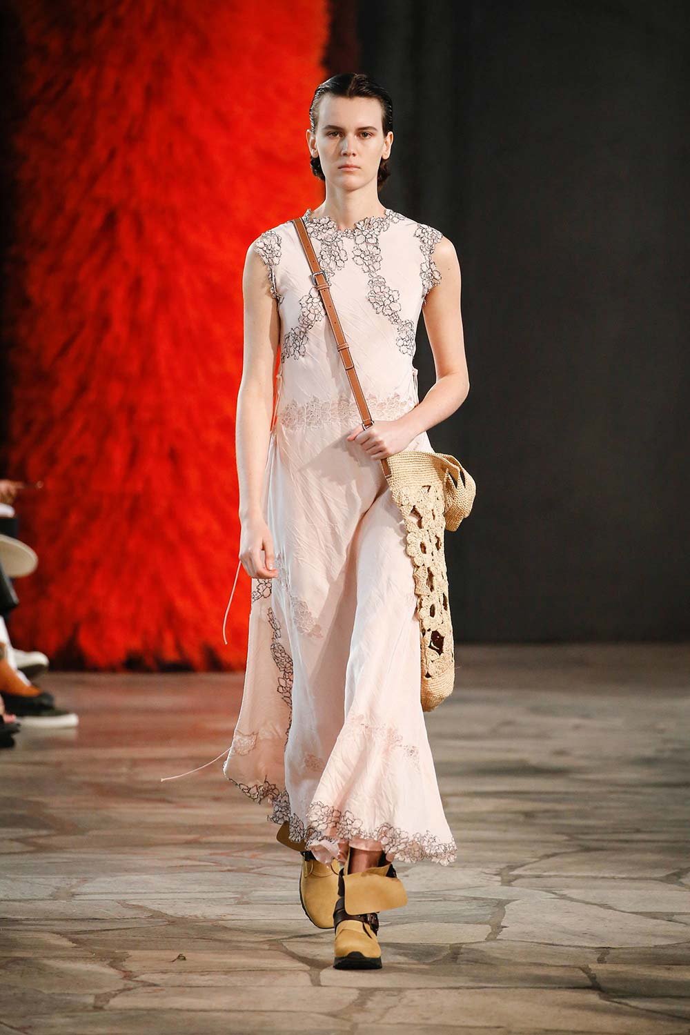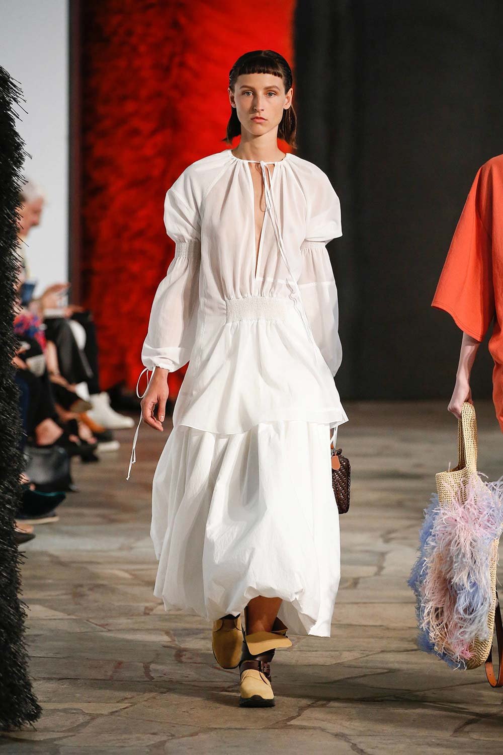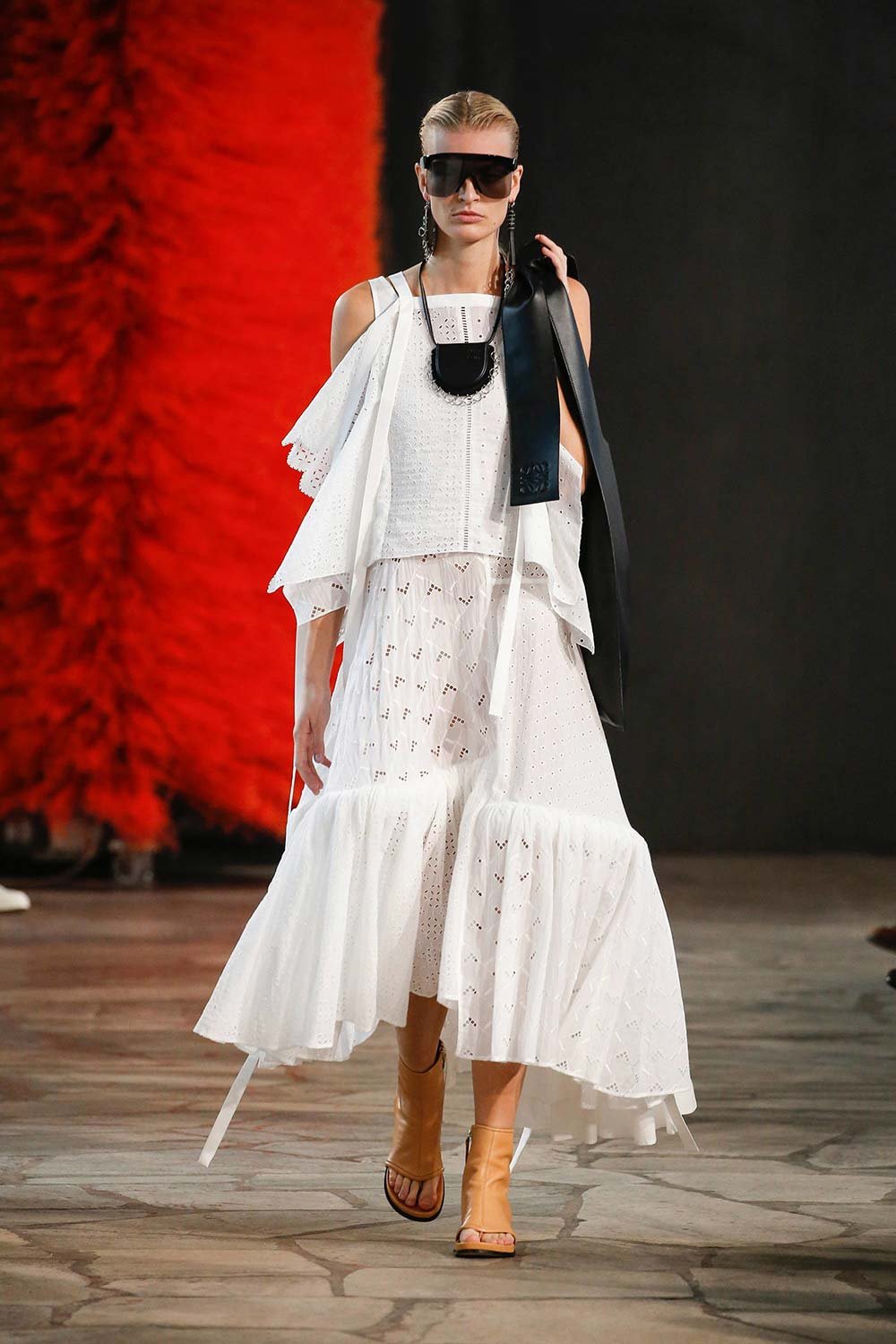 Jonathan Anderson’ın Loewe için hazırladığı 2019 İlkbahar/Yaz tasarımları UNESCO miras binasında yer alan üç çağdaş sanatçının eserleri arasında sergilendi. Satenin ağırlığı hissedilmekle beraber bohem tekstilin yoğun olduğu bir şovdu bu. Örme kumaşlar ve rahat kesimler herkes için giyilebilir bir moda vaat ediyordu. Kıyafetler aslında sıra dışıydı ama tasarımcının hedefi, herkesi ortak bir paydada buluşturan o sihirli ipliği yakalamaktı. Ve bunu da başardı. Totemik olarak nitelendirdiği saçaklı hasır çantalar ve tüy detaylarsa görünümlerin enerjisini yükseltmek ve onlara Loewe DNA’sı kazandırmak için başroldeydi.