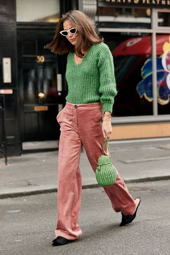 Tropikal temalı dekorasyonların olmazsa olmazı olan klorofilden yoğun arka planlar ve şeker pembesi flamingolar, alışılmışın dışında bir birliktelik oluşturuyor. Renk çarkına göre (buradan çarkın detaylarına ulaşabilirsin: Renk Blokları) tam zıt yönde bulunan bu iki renk, dekorasyondan giyime her alanda birbirini tamamlamak için kullanılıyor. Yan yana geldiklerinde parlaklığa katkı sağlayarak doğal bir kontrast ayarı veren yeşil ve pembe ile görünümün enerjisi yükseliyor.